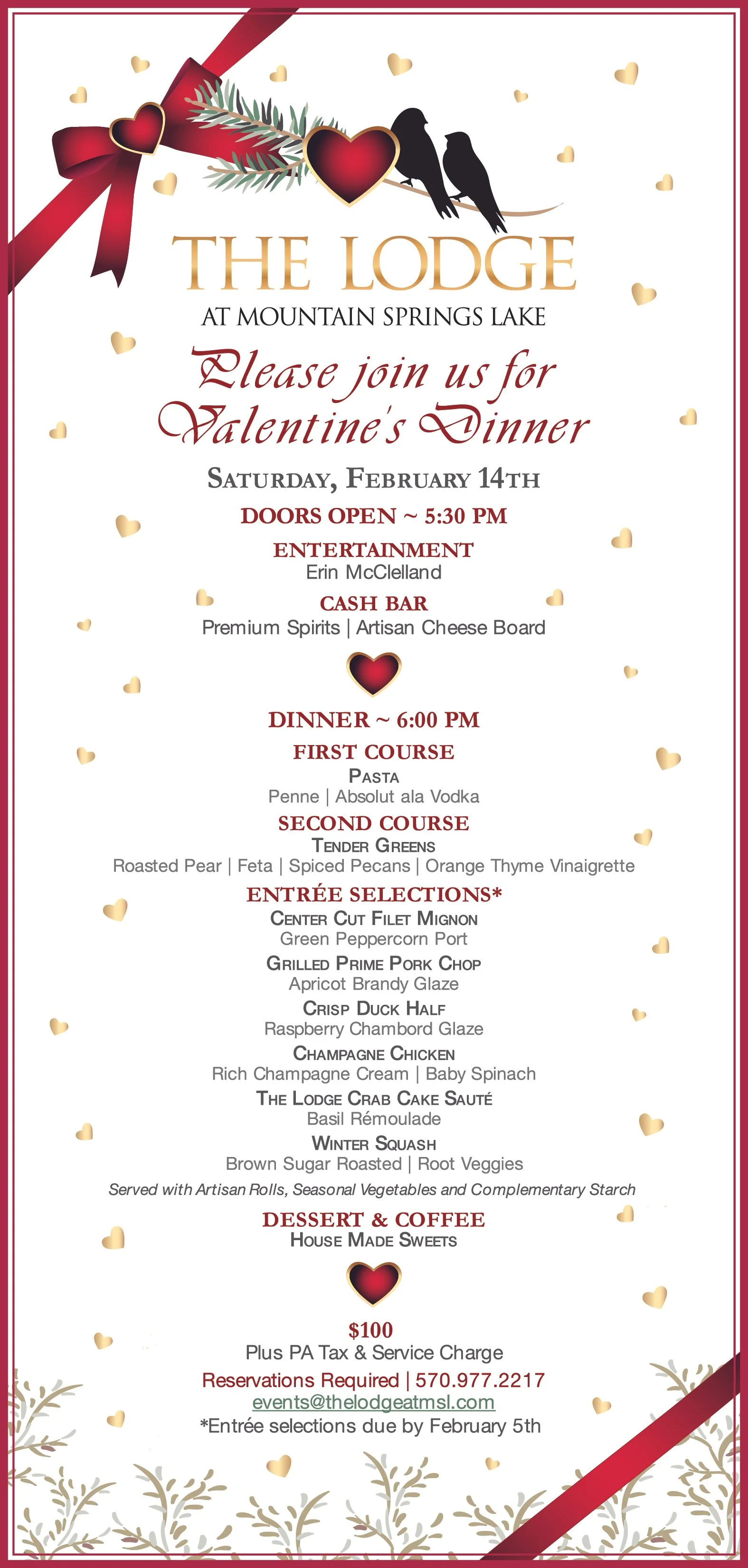 For reservations call 570.977.2217 or email events@thelodgeatmsl.com